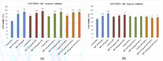 The following supporting information can be downloaded at https://www.mdpi.com/article/10.3390/ph18030389/s1. Table S1. The effect of ethanolic extract of Brazilian green propolis with LPS and/or IFN-α on the production of IL-6 compared to control in CCF-STTG1 cells (n = 3) in normoxia. Fisher’s LSD test was used to evaluate statistical significance. Results marked in red are statistically significant in Fisher’s LSD test. Multivariate Tests of Significance (F = 6.009, p < 0.05). Table S2. The effect of ethanolic extract of Brazilian green propolis with LPS and/or IFN-α on the production of IFN-γ compared to control in CCF-STTG1 cells (n = 3) in normoxia. Fisher’s LSD test was used to evaluate statistical significance. Results marked in red are statistically significant in Fisher’s LSD test. Multivariate Tests of Significance (F = 6.009, p < 0.05). Table S3. The effect of ethanolic extract of Brazilian green propolis with LPS and/or IFN-α on the production of IL-5 compared to control in CCF-STTG1 cells (n = 3) in normoxia. Fisher’s LSD test was used to evaluate statistical significance. Results marked in red are statistically significant in Fisher’s LSD test. Multivariate Tests of Significance (F = 6.009, p < 0.05). Table S4. The effect of ethanolic extract of Brazilian green propolis with LPS and/or IFN-α on the production of VEGF compared to control in CCF-STTG1 cells (n = 3) in normoxia. Fisher’s LSD test was used to evaluate statistical significance. Results marked in red are statistically significant in Fisher’s LSD test. Multivariate Tests of Significance (F = 6.009, p < 0.05). Table S5. The effect of ethanolic extract of Brazilian green propolis with LPS and/or IFN-α on the production of PDGF-BB in compared to control in CCF-STTG1 cells (n = 3) in normoxia. Fisher’s LSD test was used to evaluate statistical significance. Results marked in red are statistically significant in Fisher’s LSD test. Multivariate Tests of Significance (F = 6.009, p < 0.05). Table S6. The effect of ethanolic extract of Brazilian green propolis with LPS and/or IFN-α on the production of IL-6 compared to control in CCF-STTG1 cells (n = 3) in hypoxia. Fisher’s LSD test was used to evaluate statistical significance. Results marked in red are statistically significant in Fisher’s LSD test. Multivariate Tests of Significance (F = 4.363, p < 0.05). Table S7. The effect of ethanolic extract of Brazilian green propolis with LPS and/or IFN-α on the production of IFN-γ compared to control in CCF-STTG1 cells (n = 3) in hypoxia. Fisher’s LSD test was used to evaluate statistical significance. Results marked in red are statistically significant in Fisher’s LSD test. Multivariate Tests of Significance (F = 4.363, p < 0.05). Table S8. The effect of ethanolic extract of Brazilian green propolis with LPS and/or IFN-α on the production of IL-5 compared to control in CCF-STTG1 cells (n = 3) in hypoxia. Fisher’s LSD test was used to evaluate statistical significance. Results marked in red are statistically significant in Fisher’s LSD test. Multivariate Tests of Significance (F = 4.363, p < 0.05). Table S9. The effect of ethanolic extract of Brazilian green propolis with LPS and/or IFN-α on the production of VEGF compared to control in CCF-STTG1 cells (n = 3) in hypoxia. Fisher’s LSD test was used to evaluate statistical significance. Results marked in red are statistically significant in Fisher’s LSD test. Multivariate Tests of Significance (F = 4.363, p < 0.05). Table S10. The effect of ethanolic extract of Brazilian green propolis with LPS and/or IFN-α on the production of PDGF-BB compared to control in CCF-STTG1 cells (n = 3) in hypoxia. Fisher’s LSD test was used to evaluate statistical significance. Results marked in red are statistically significant in Fisher’s LSD test. Multivariate Tests of Significance (F = 4.363, p < 0.05). Table S11. The effect of artepillin C with LPS and/or IFN-α on the production of IL-6 compared to control in CCF-STTG1 cells (n = 3) in normoxia. Fisher’s LSD test was used to evaluate statistical significance. Results marked in red are statistically significant in Fisher’s LSD test. Multivariate Tests of Significance (F = 4.495, p < 0.05). Table S12. The effect of artepillin C with LPS and/or IFN-α on the production of IFN-γ compared to control in CCF-STTG1 cells (n = 3) in normoxia. Fisher’s LSD test was used to evaluate statistical significance. Results marked in red are statistically significant in Fisher’s LSD test. Multivariate Tests of Significance (F = 4.495, p < 0.05). Table S13. The effect of artepillin C with LPS and/or IFN-α on the production of IL-5 compared to control in CCF-STTG1 cells (n = 3) in normoxia. Fisher’s LSD test was used to evaluate statistical significance. Results marked in red are statistically significant in Fisher’s LSD test. Multivariate Tests of Significance (F = 4.495, p < 0.05). Table S14. The effect of artepillin C with LPS and/or IFN-α on the production of VEGF compared to control in CCF-STTG1 cells (n = 3) in normoxia. Fisher’s LSD test was used to evaluate statistical significance. Results marked in red are statistically significant in Fisher’s LSD test. Multivariate Tests of Significance (F = 4.495, p < 0.05). Table S15. The effect of artepillin C with LPS and/or IFN-α on the production of PDGF-BB compared to control in CCF-STTG1 cells (n = 3) in normoxia. Fisher’s LSD test was used to evaluate statistical significance. Results marked in red are statistically significant in Fisher’s LSD test. Multivariate Tests of Significance (F = 4.495, p < 0.05). Table S16. The effect of artepillin C with LPS and/or IFN-α on the production of IL-6 compared to control in CCF-STTG1 cells (n = 3) in hypoxia. Fisher’s LSD test was used to evaluate statistical significance. Results marked in red are statistically significant in Fisher’s LSD test. Multivariate Tests of Significance (F = 2.5011,