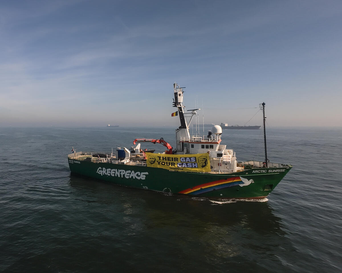 In 2025, Greenpeace’s iconic Arctic Sunrise is on a mission across Europe to expose the dirty truth about fossil gas, build a European movement for a fossil-free future, and take action for an EU-wide ban on new fossil fuel projects and a full gas phase-out by 2035.