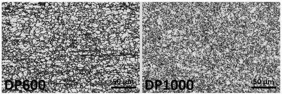 3]. Among these steels, dual-phase steels have emerged as a significant area of interest. The high strength of the structural components of vehicles is associated with enhanced formability due to the low yield strength, which contributes to passenger safety. Dual-phase steels are among the most widely used in the AHSS family [