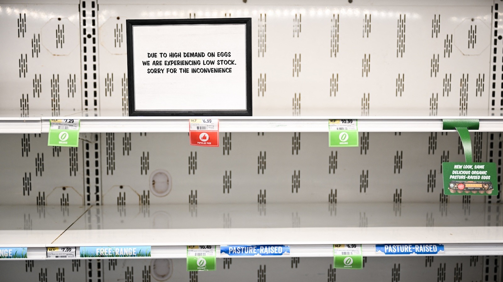 Buying eggs at the grocery store has become a major headache for U.S. consumers, with the average price of a dozen large eggs in a typical American city reaching $4.95 last month. Since the start of 2020, the cost of eggs has increased by nearly 240 percent, according to data from the U.S. Bureau of Labor Statistics. Recently, acquiring eggs has become a game of luck — as shoppers find barren cooler cases and limits on how many cartons they can buy at the grocery store. The kitchen staple has gotten so hard to come by that thieves stole 100,000 eggs — worth $40,000 — off of a distribution trailer in Pennsylvania earlier this month.